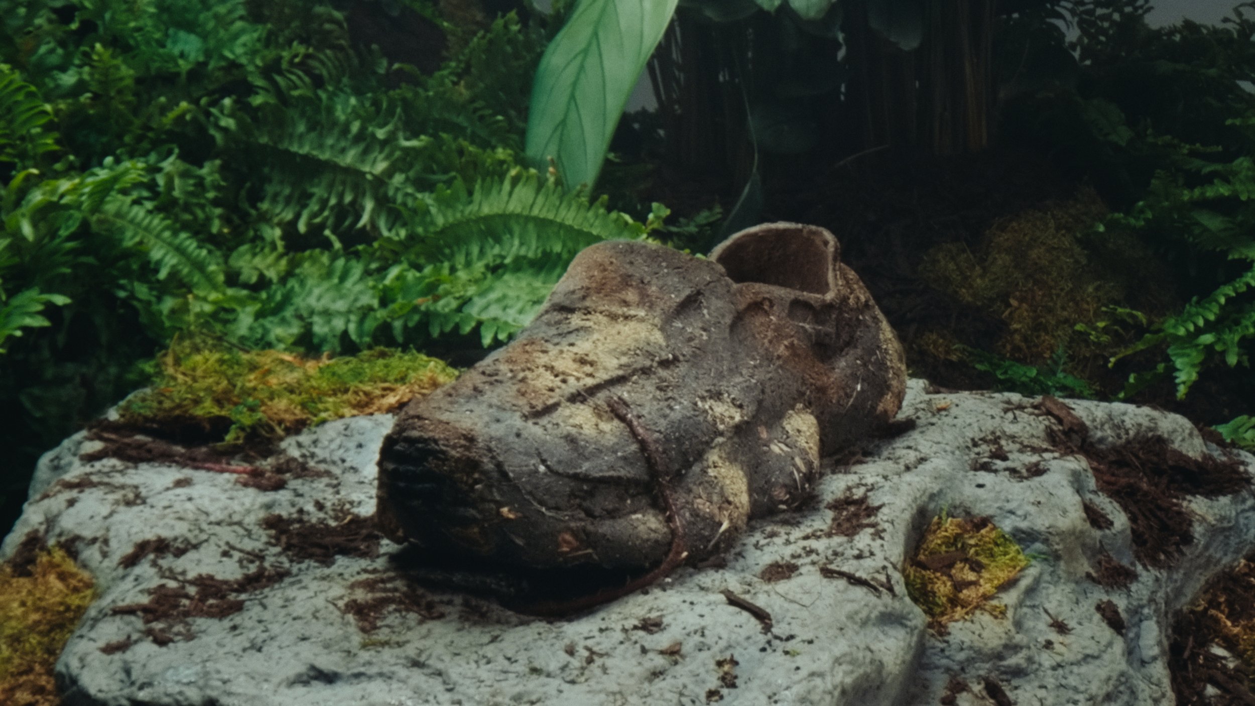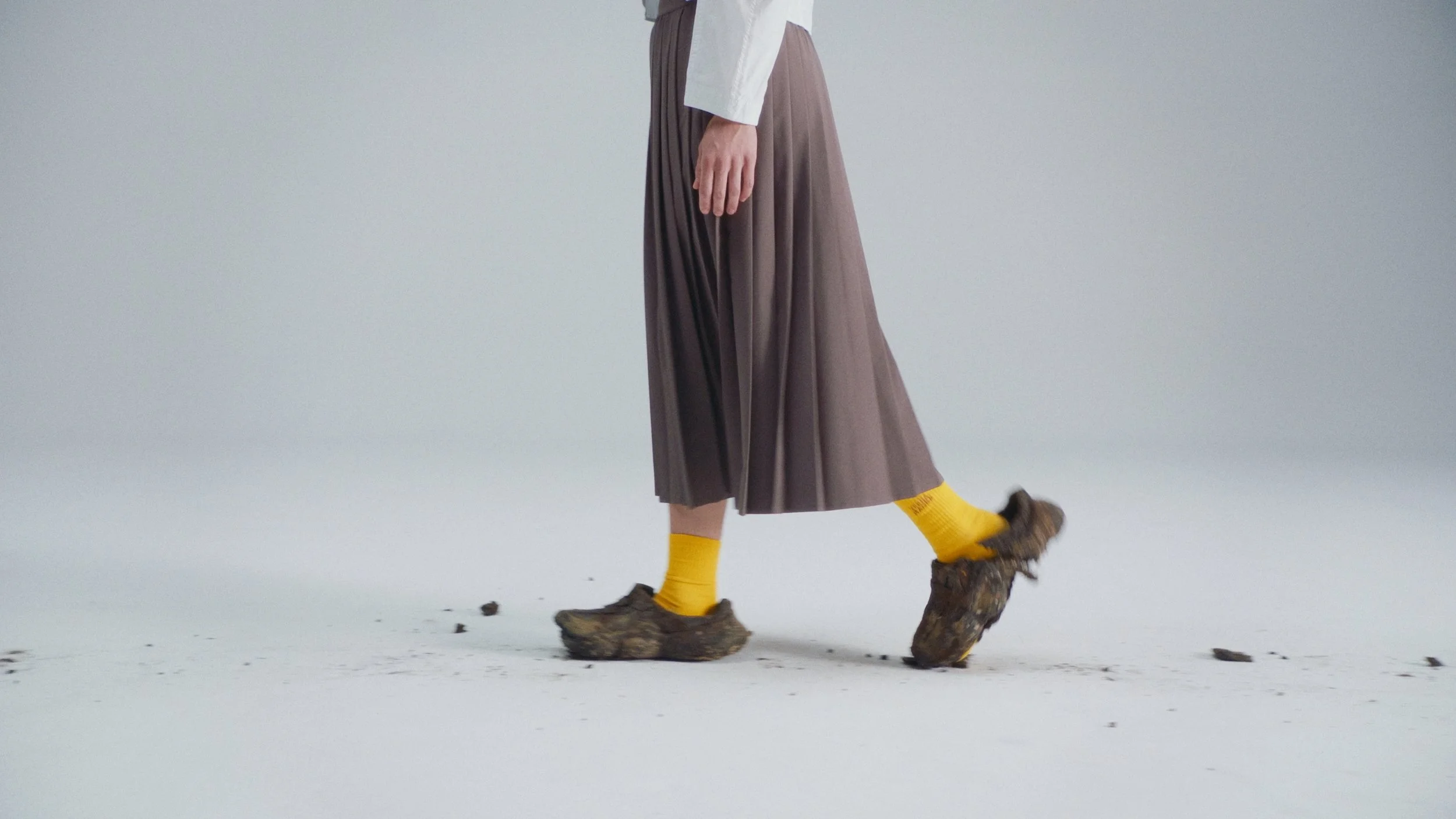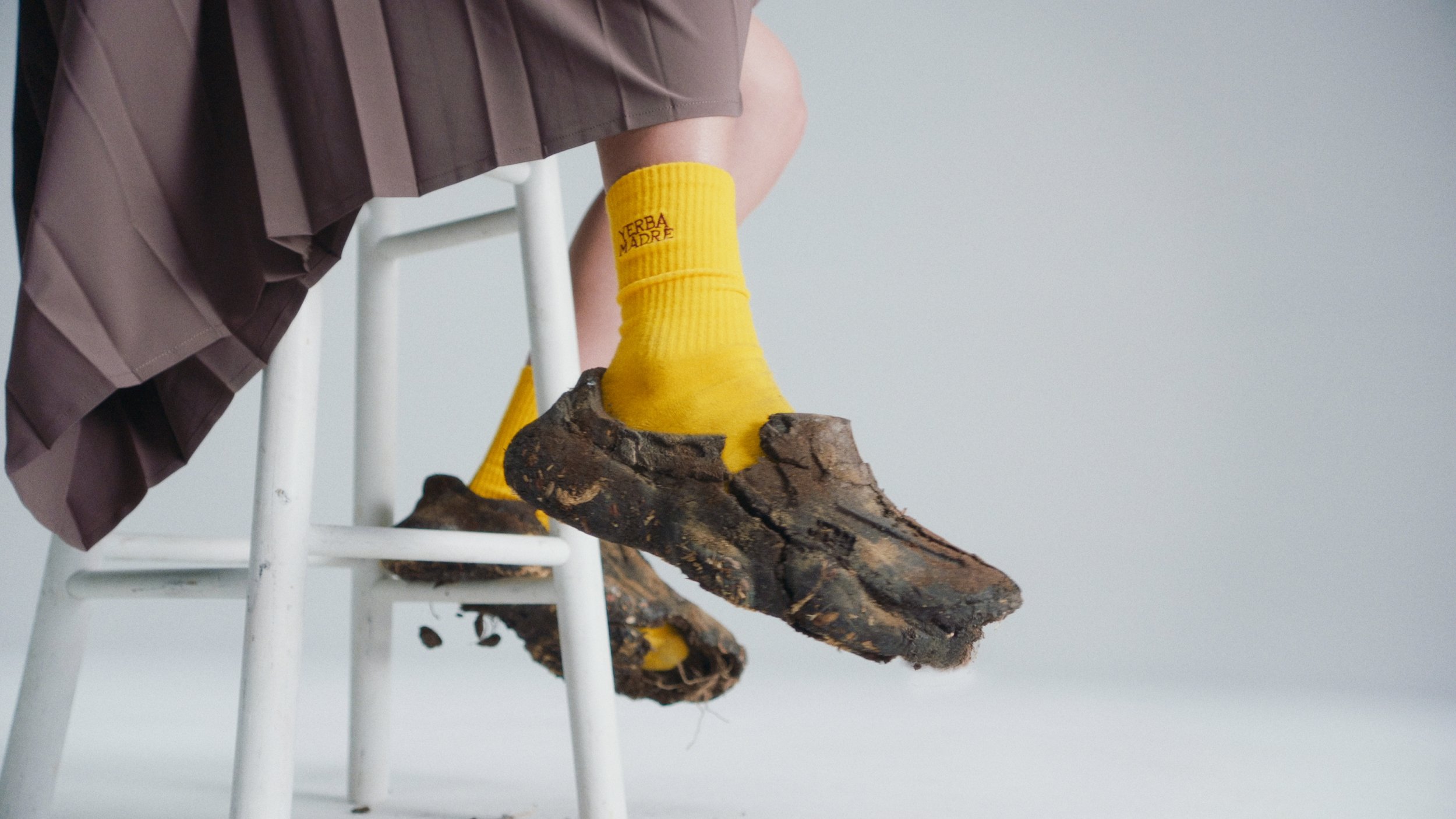 A series of vignettes for beverage brand Yerba Madre, highlighting shoes made entirely of dirt.